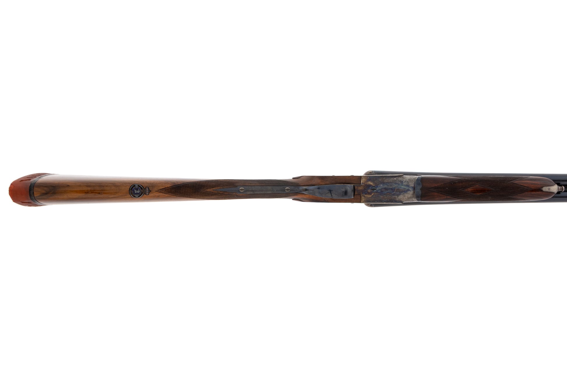 This 20-gauge side-by-side embodies the soul of true Spanish craftsmanship. This piece was built in Eibar and commissioned for a shoot in Seville. The side-lock provides even more real estate for the color case hardening that still holds a colorful blend after all this time. Boasting its traditional straight English stock and original Hy-Gun recoil pad, this Luis Arrizabalaga offers a refined shooting experience.