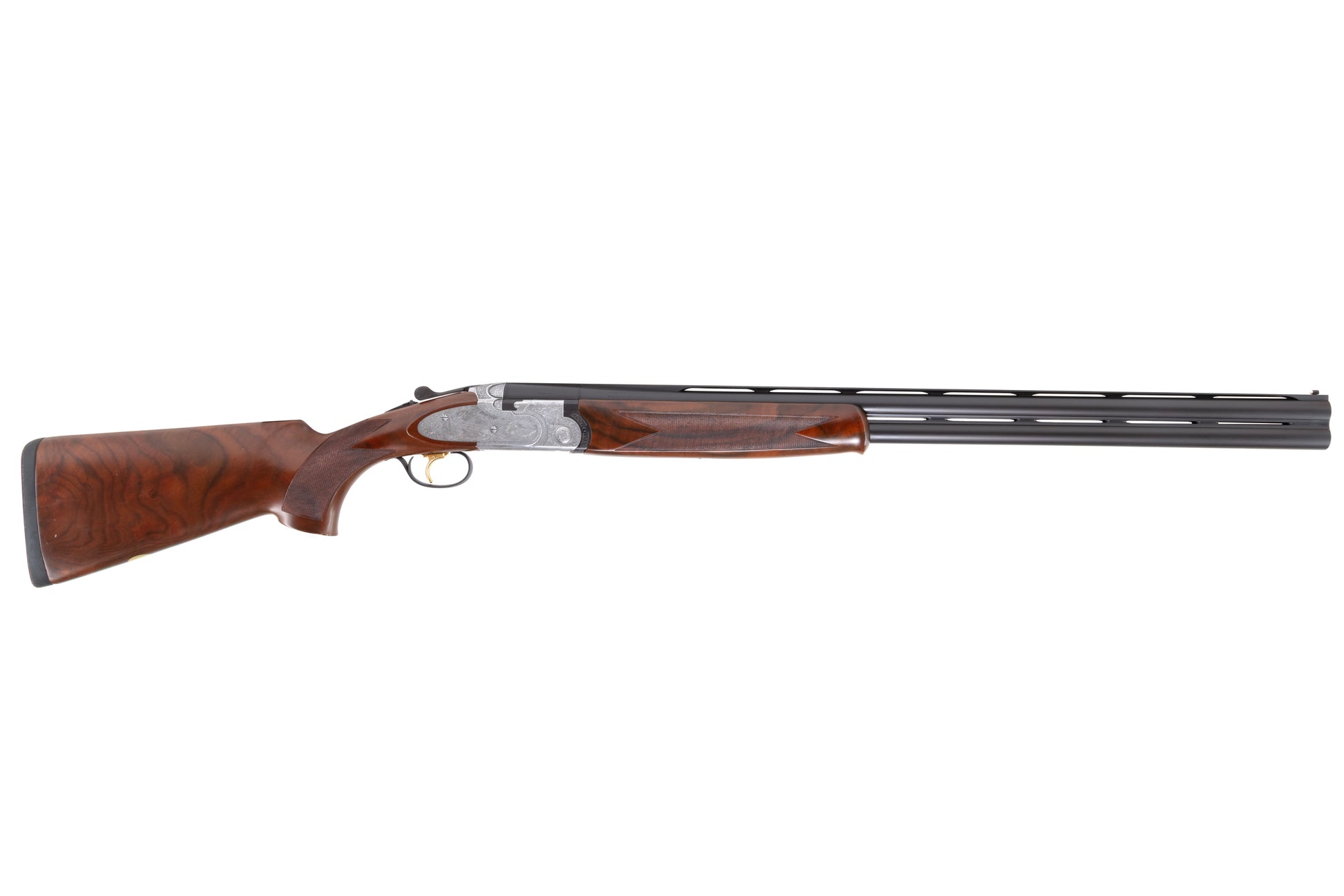 Very nice pre-owned 1997 687 EELL Diamond Pigeon from Beretta. Overall the gun is in excellent mechanical and cosmetic condition. The stock and forearm show some light scattered handling marks throughout. Gun features game scene engraved sideplates, non-engraved stock oval and adjustable trigger shoe.