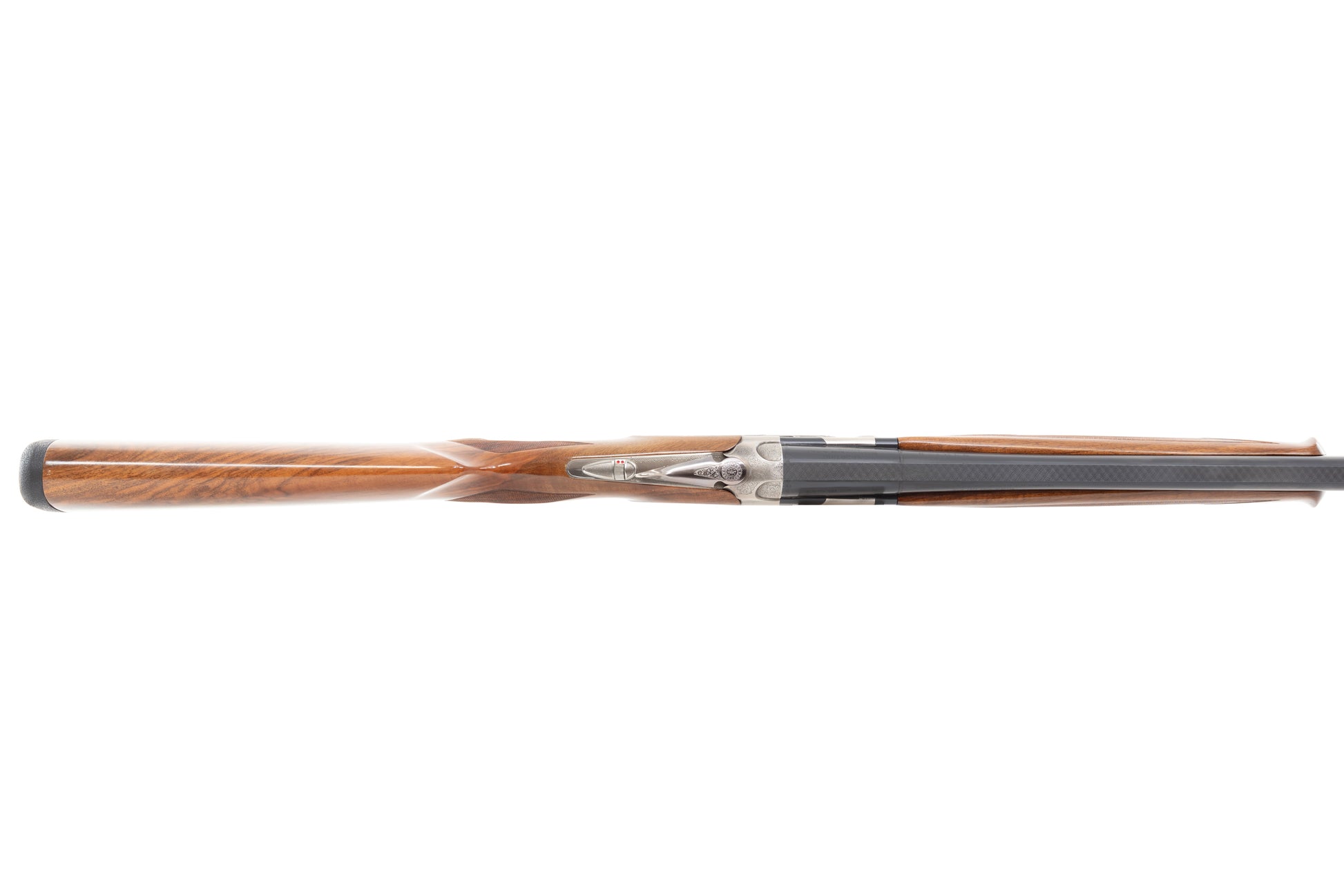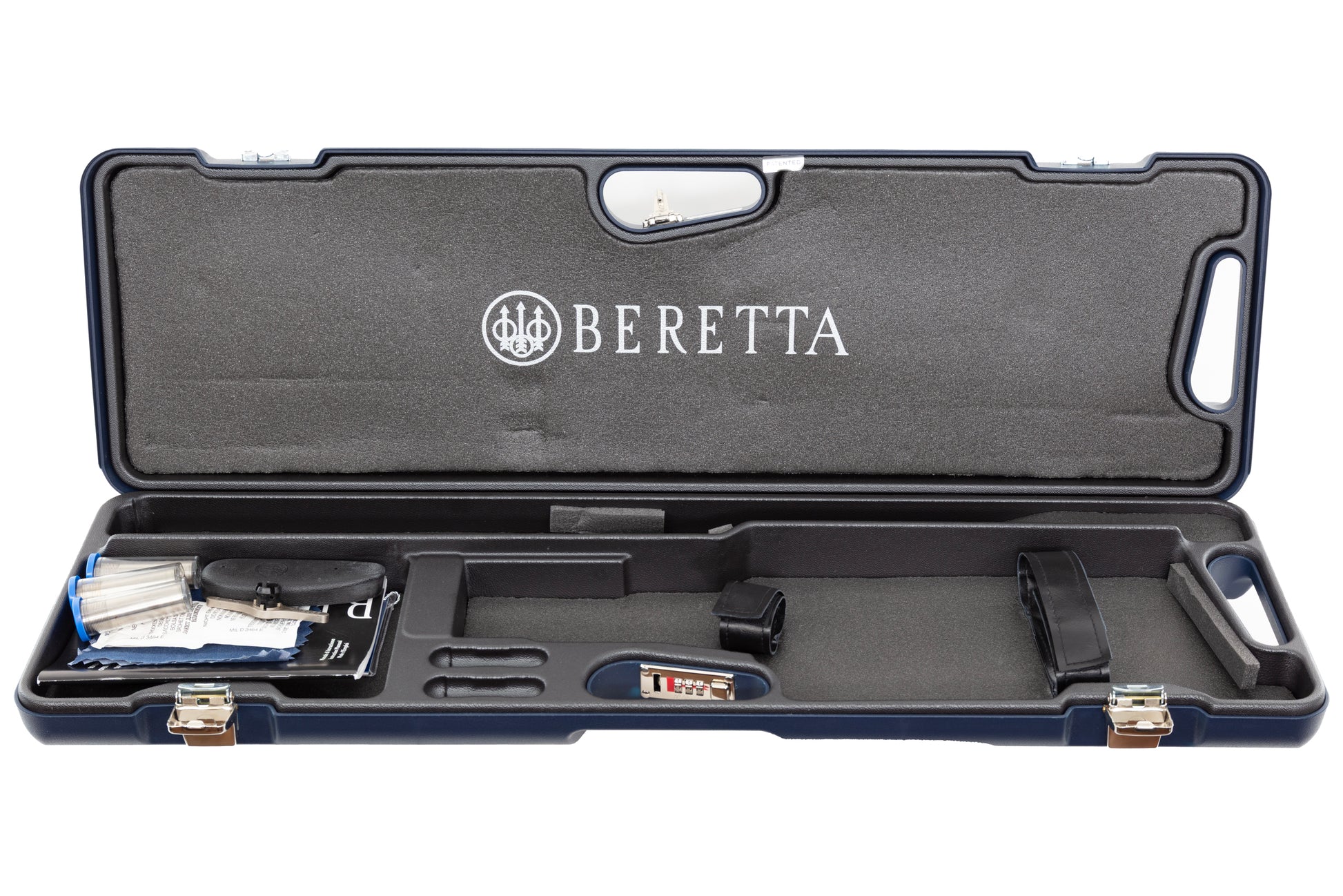 Stock oval is non-engraved. Gun comes cased with flush chokes, spare pad and choke wrench.