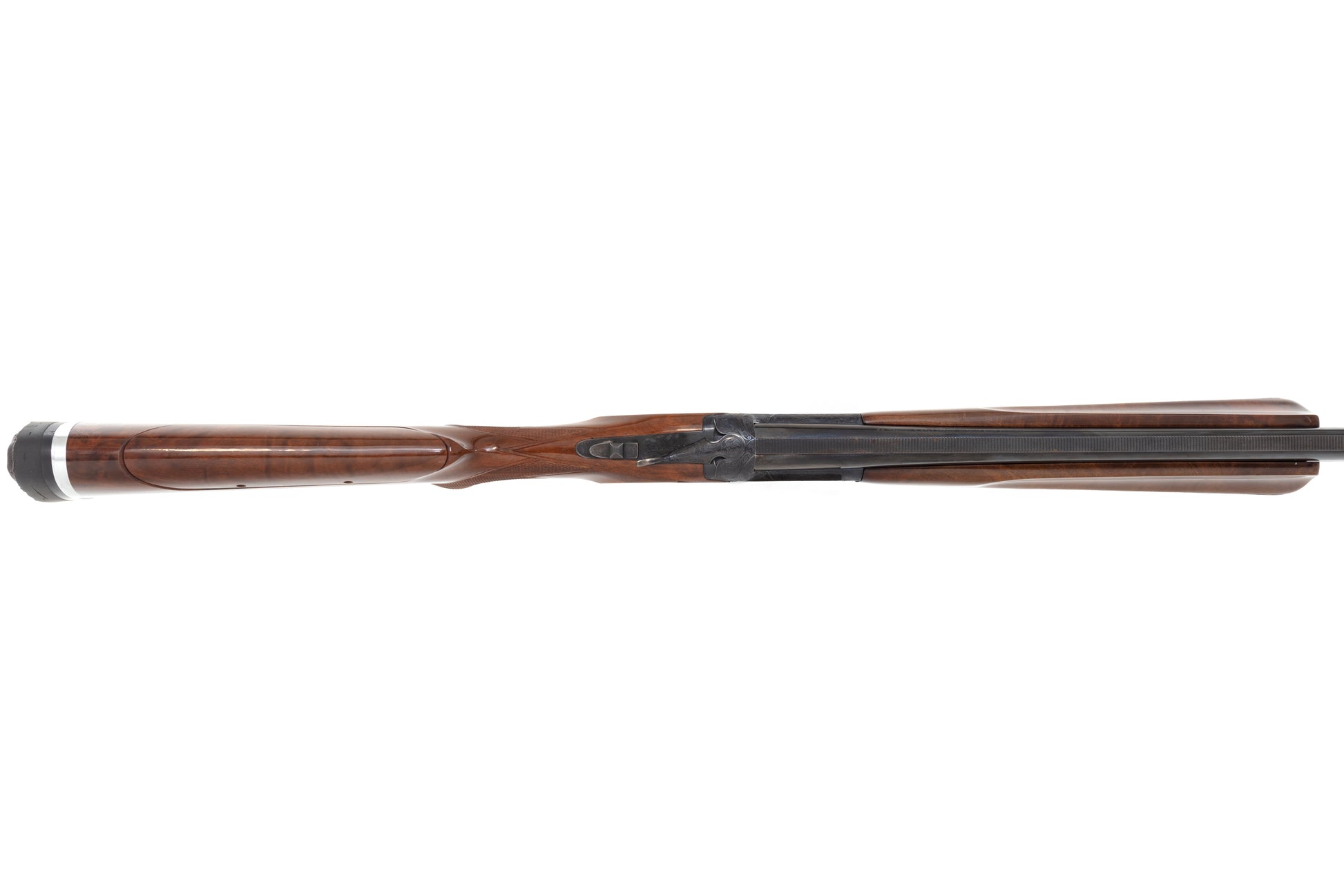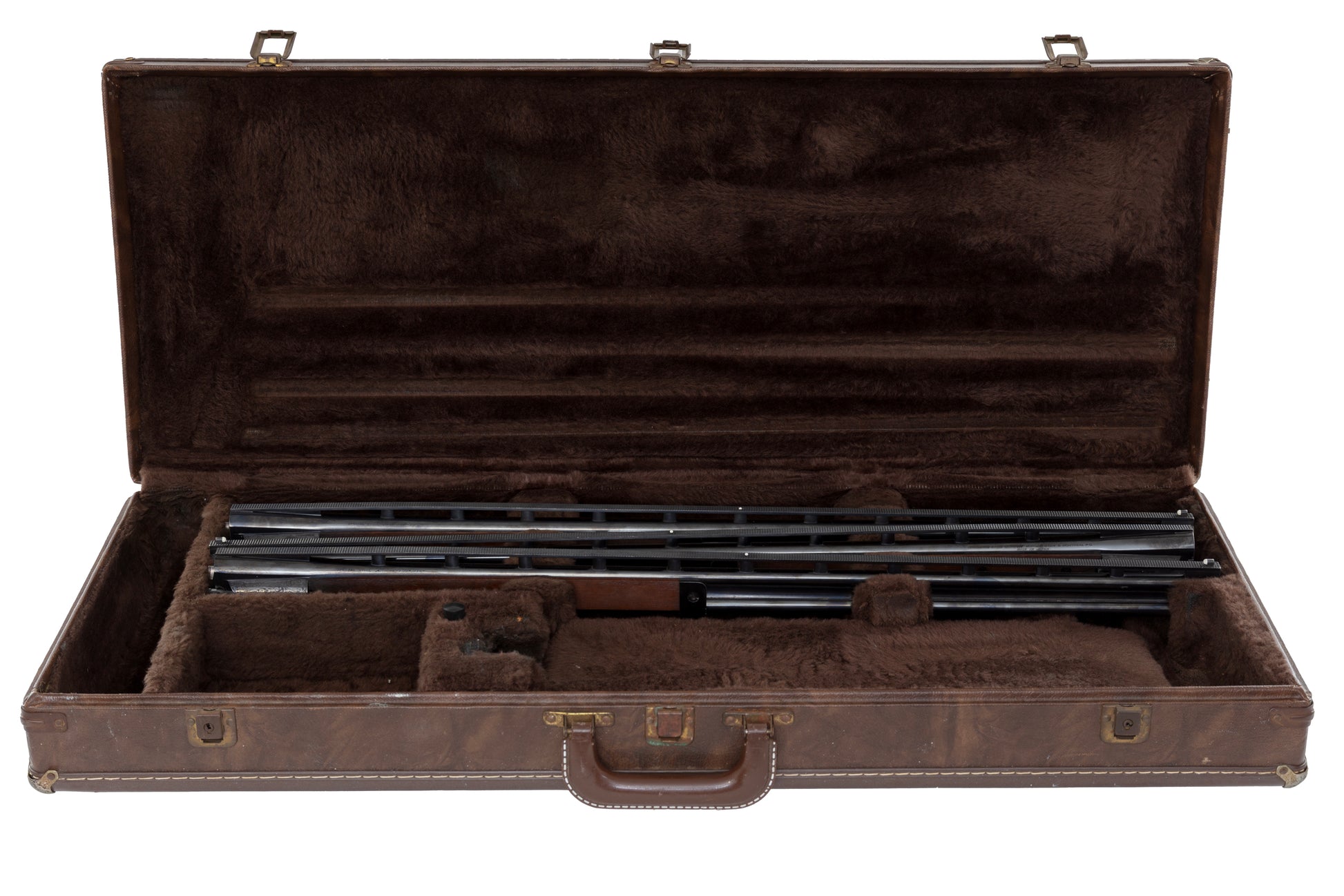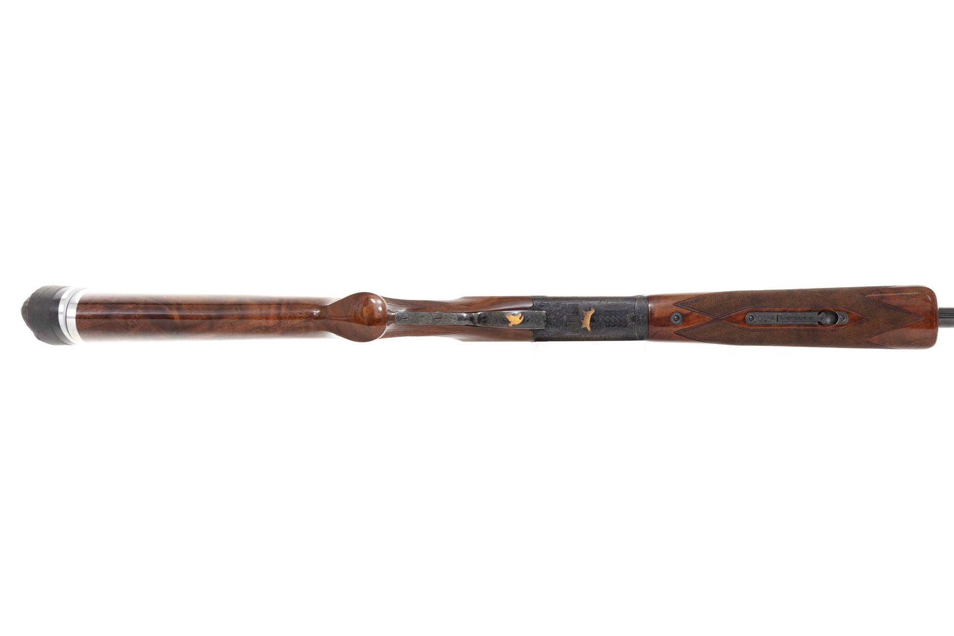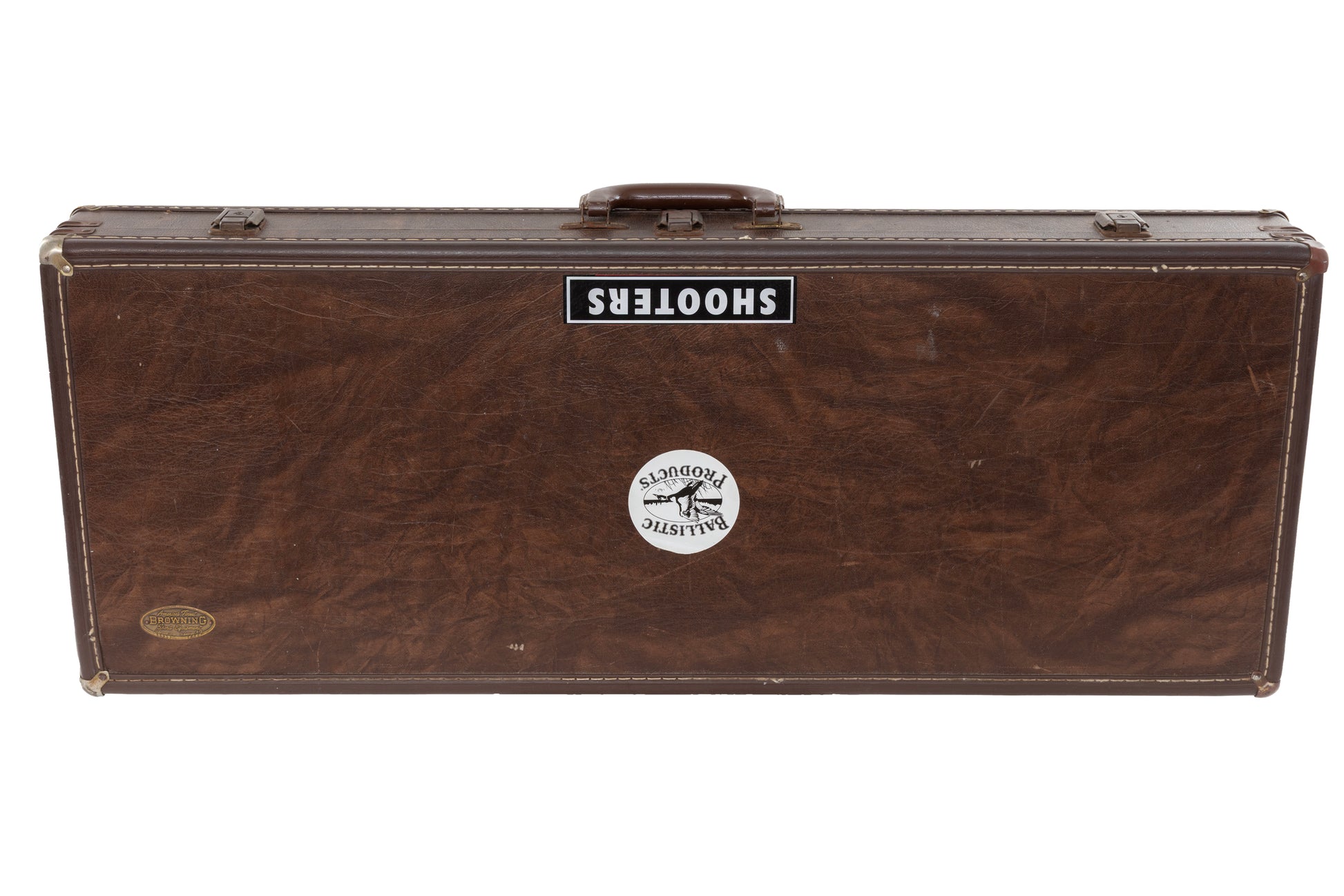 Very nice pre-owned Citori 4 barrel set from Browning. Overall the gun in is excellent mechanical condition and very good cosmetic condition. The receiver has some tarnishing to the finish, mostly around the curved areas. Features a long tang trigger guard engraved with a game scene, matching the game scene engraving on the receiver.