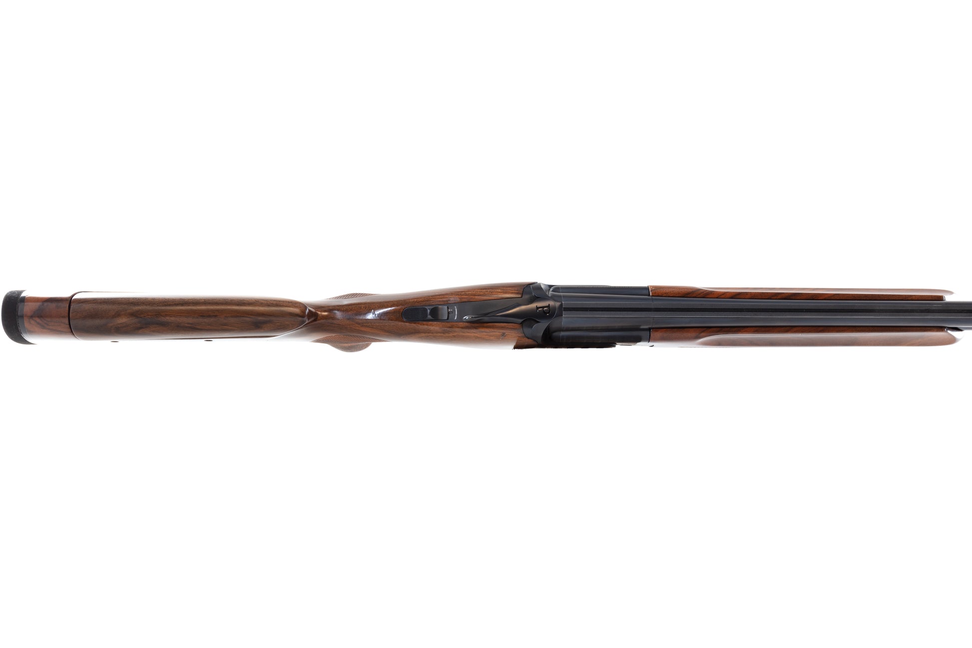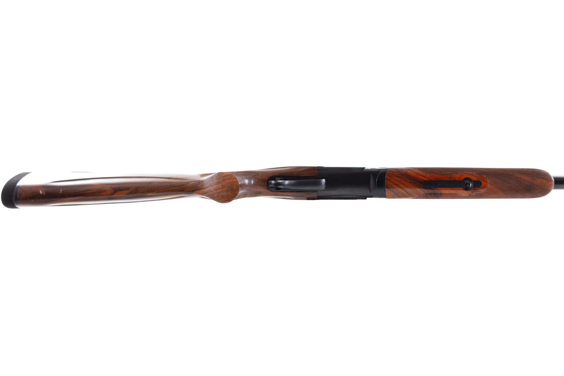 Very nice pre-owned High Tech left hand sporter from Perazzi. Overall the gun is in excellent mechanical and cosmetic condition. Furniture has some scattered handling marks throughout, with a small concentration of dents to the bottom of the toe.