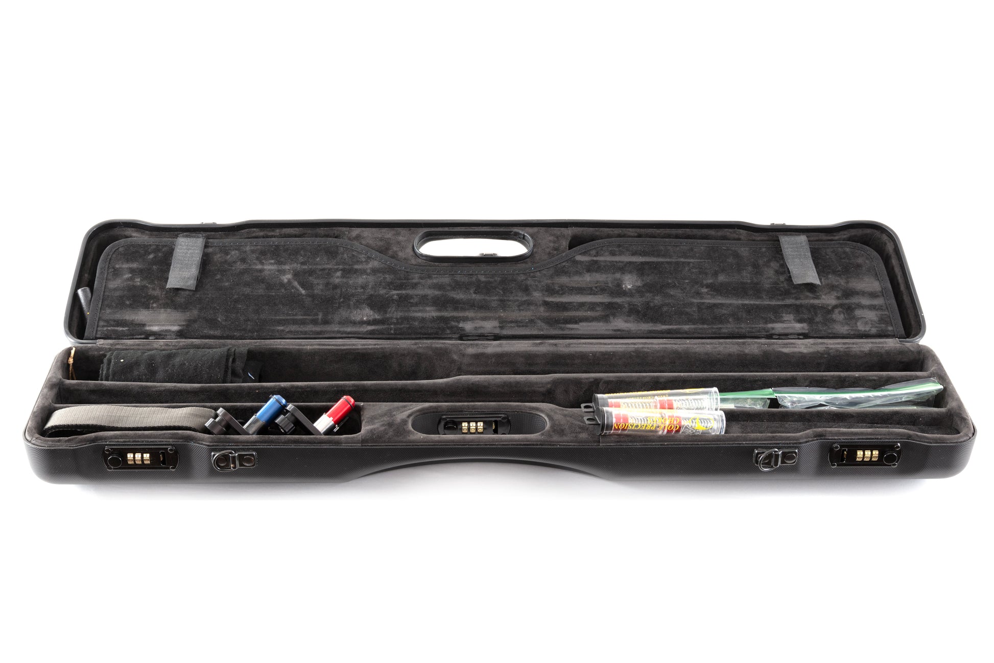 Very nice pre-owned BR240 Cole Special combo sporting shotgun from Rizzini. Overall in excellent mechanical and cosmetic condition. Wood grip cap has been laser engraved with a capital "R". Comes in the factory combo case with Cole Precision chokes for each set of barrels, snap caps, choke wrenches, comb tools and stock & barrel sleeves.